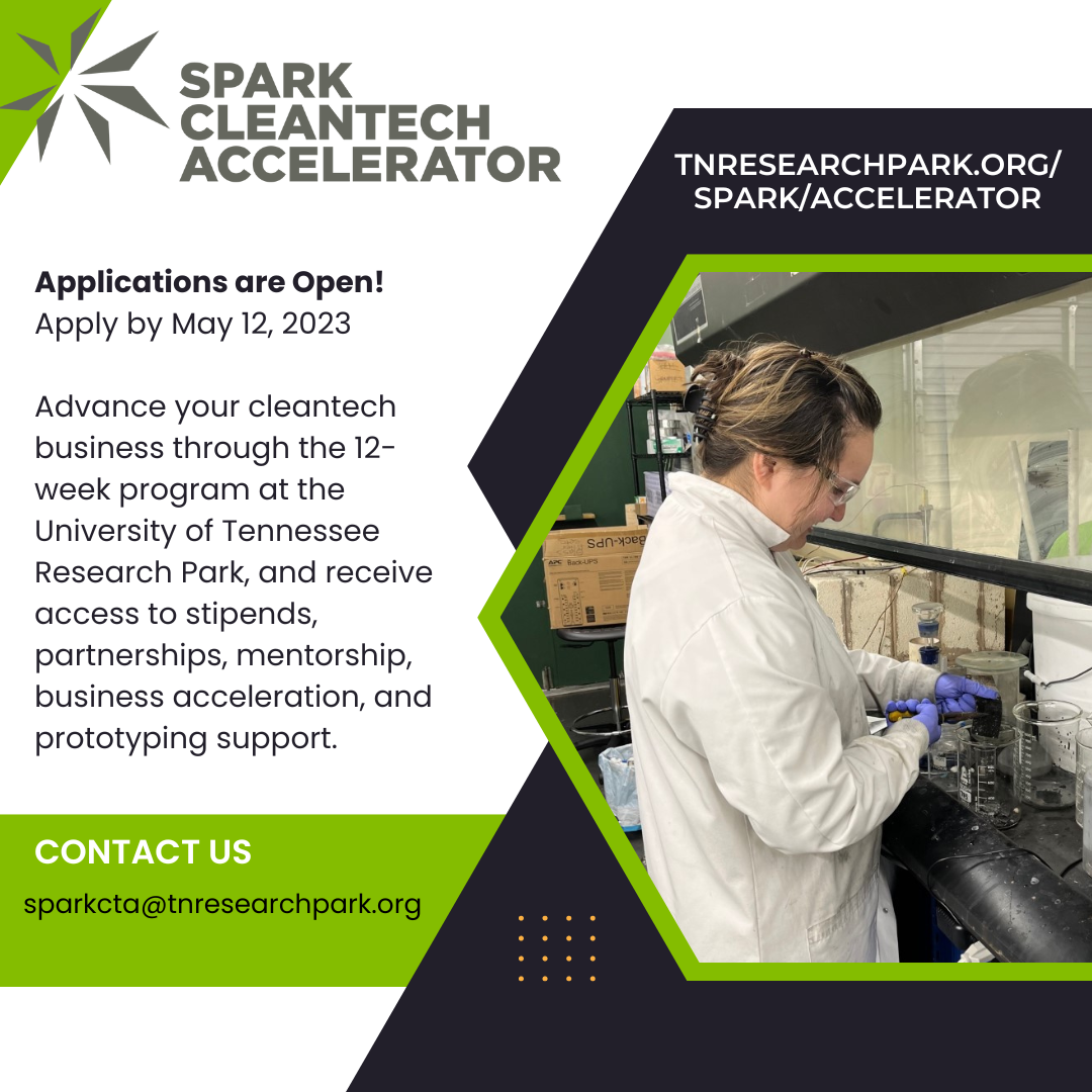 The accelerator will be accepting applications until May 12th. Interested companies can apply and find more information at www.tnresearchpark.org/spark/accelerator and reach out to sparkcta@tnresearchpark.org with questions.